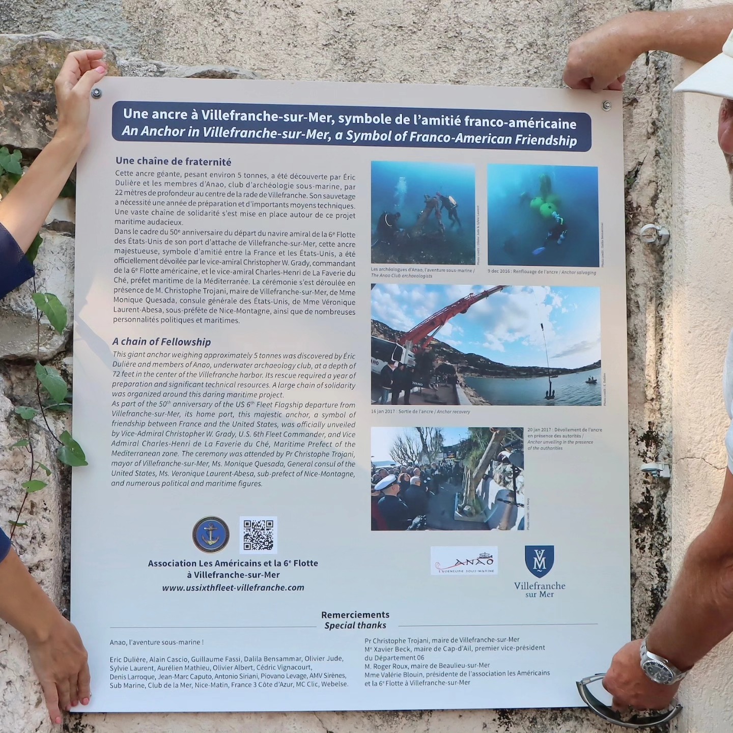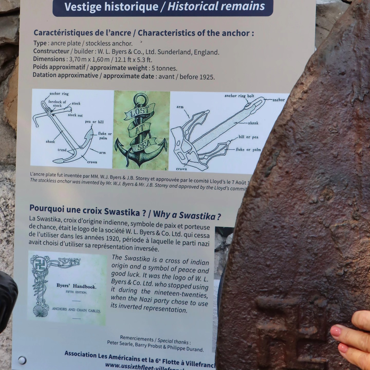 Une ancre géante devenue symbole de l'amitié franco-américaine entre Villefranche-sur-Mer et la 6e Flotte de l'U.S. Navy Cette ancre est un symbole fort de l'amitié entre la France et les Etats-Unis.
